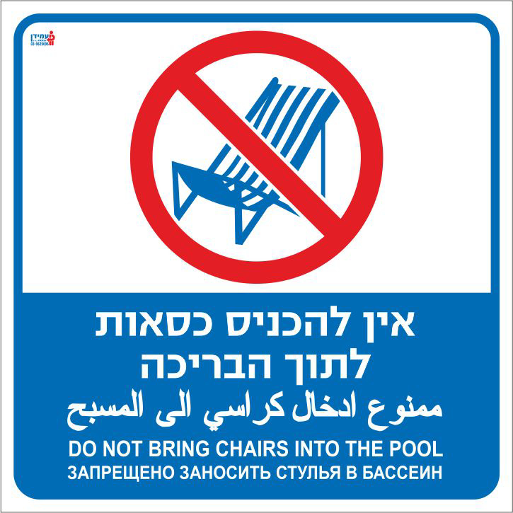שלט אין להכניס כסאות לתוך הבריכה ערבית אנגלית רוסית