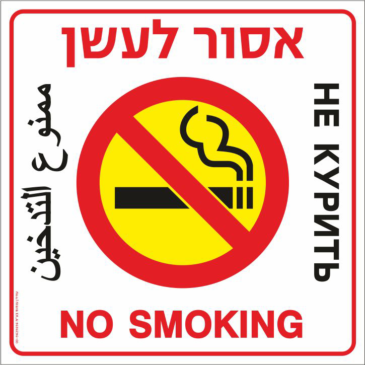 שלט אסור לעשן אנגלית, ערבית, רוסית