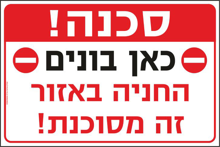 שלט סכנה כאן בונים החניה באזור זה מסוכנת
